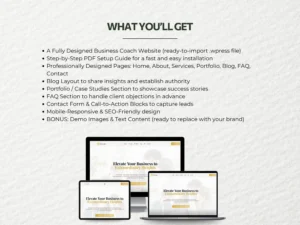 With a modern design, clean structure, and pre-built pages, all you need to do is add your own content. No coding required. Within minutes, you’ll have a professional coaching website that positions you as an authority in your field.