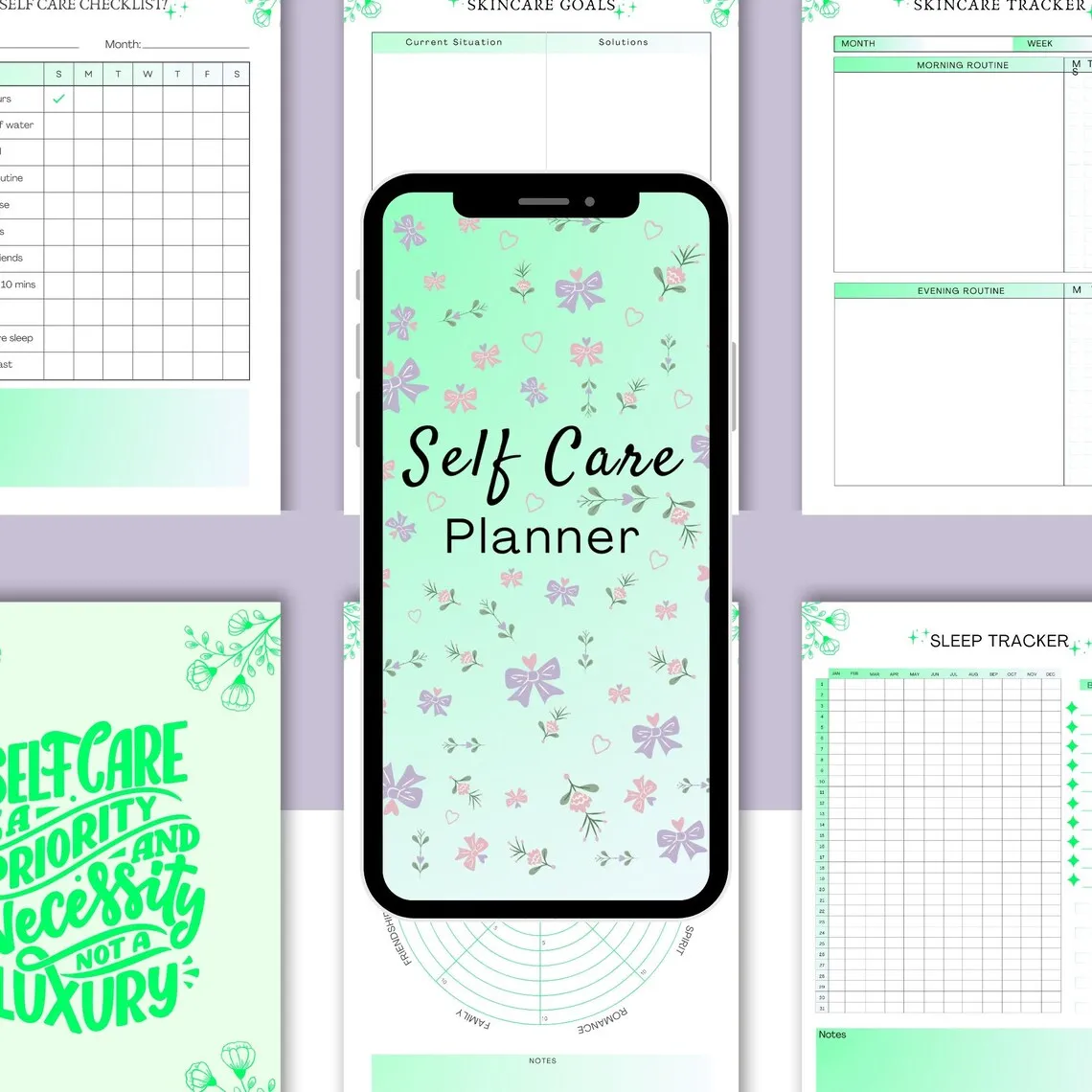 Mood trackers, wellness logs, skincare & haircare sheets